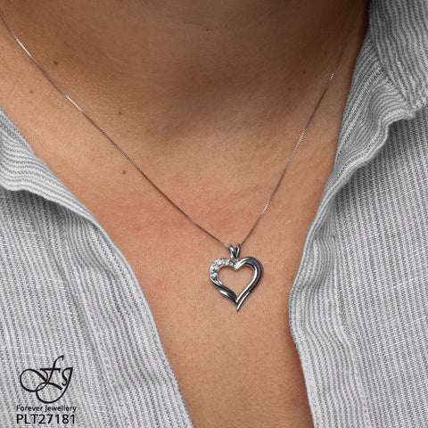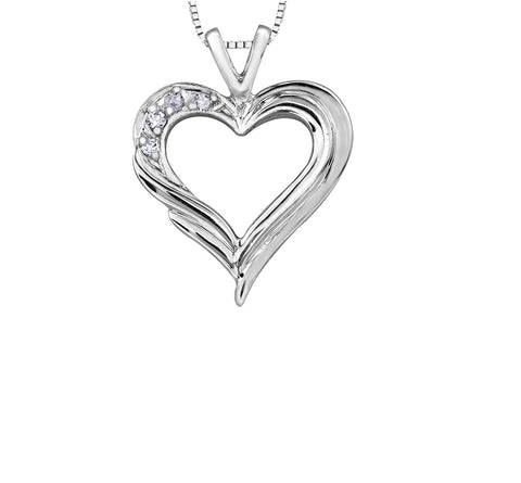 Simply elegant. Open design heart pendant with delicate detailing showcasing four shimmering diamonds along the heart. This timeless piece makes for the perfect gift for any occasion.