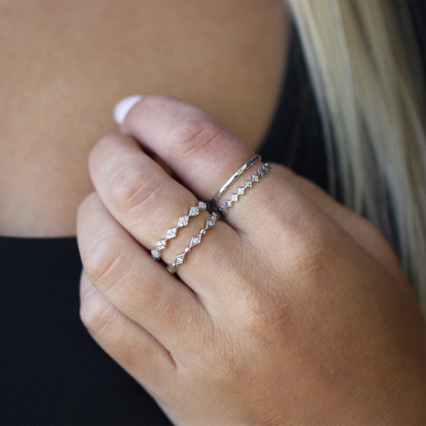 10kt white gold circle and diamond-designed band with elegant diamond accents throughout. Stackable rings are the current trend - chic and great for layering. You can wear them on every finger! They are meant to be a fun and playful accessory for any day and any occasion.