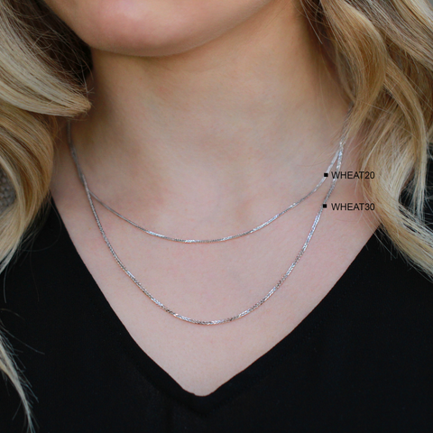 10kt White Gold Square Wheat30 Chain in 16-inch