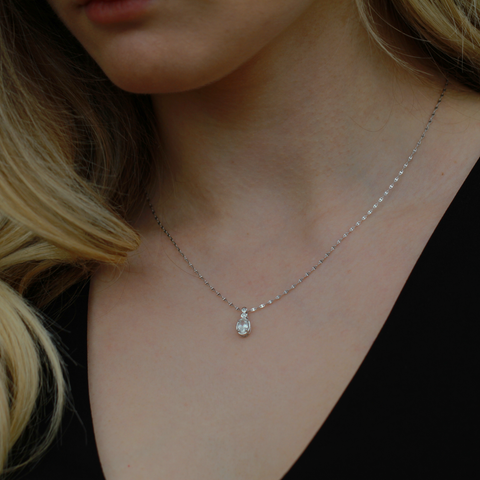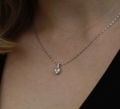 Radiating elegance and timelessness, this 10kt white gold pendant showcases an oval-cut white topaz center adorned by two round diamonds. This beautiful pendant makes a thoughtful gift for anyone and comes with a complementary 18-inch chain. For a coordinated and sophisticated look, complete the set with matching earrings and a ring.
