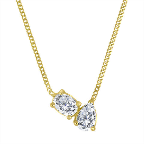 Celebrate in style with this elegant pendant featuring pear and oval-cut lab created diamonds. Whether treating yourself or gifting someone special, it’s perfect for both everyday wear and memorable occasions.