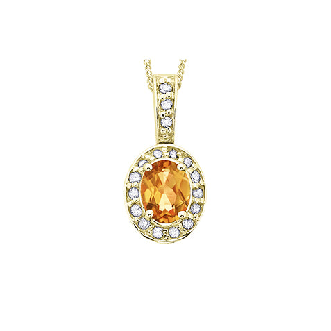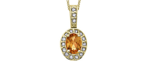 10kt Yellow Gold Oval Orange Sapphire And Diamond Halo Pendant