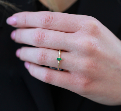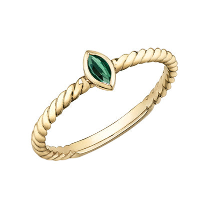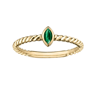 10kt Yellow Gold Rope Shank Stackable Ring with Emerald