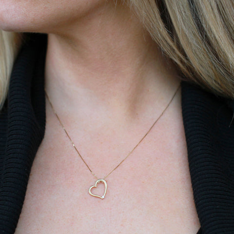 This timeless yellow gold heart pendant is the perfect gift for any occasion either for yourself or for that special someone. The open-heart design with a solitaire Canadian diamond is sure to make anyone smile. It comes with an 18-inch complimentary chain.