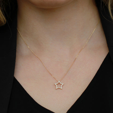 Get her the best gift in the universe. These gorgeous round diamonds are set in a 10kt yellow gold star design. Makes for the perfect piece for every day or any special occasion. It comes with an 18-inch complimentary chain.