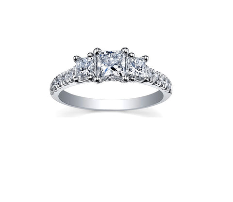 14kt White Gold Princess Cut Three Across 1.00cttw Diamond Ring