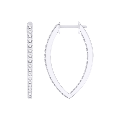 10kt White Gold 0.50cttw In And Out Diamond Triangle Hoop Earrings