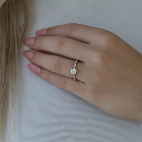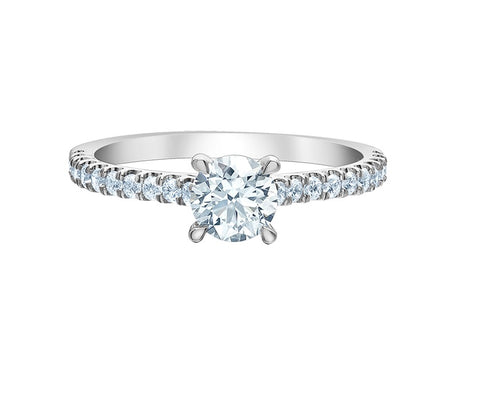Impressive 1.01cttw engagement ring for your one and only, featuring a dazzling 0.71ct round Cut Canadian diamond center store. A timeless ring for a memorable occasion.