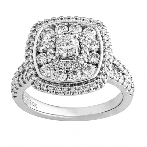 14kt White Gold 1.17cttw Cushion Cut Canadian Diamond Center Halo Ring