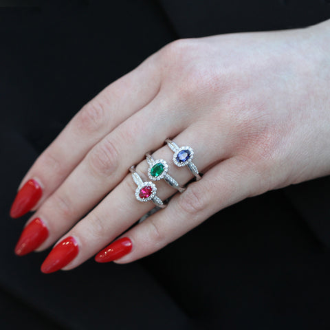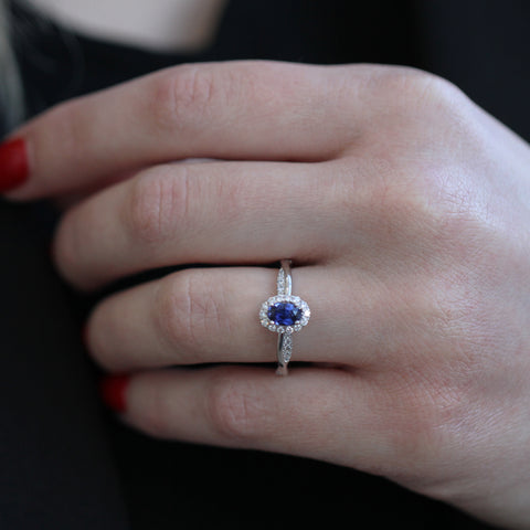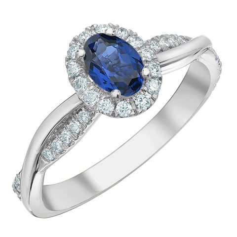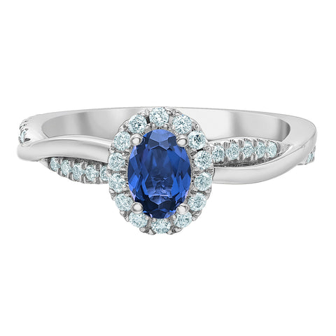 14kt White Gold Oval Lab-Grown Sapphire And Diamond Ring