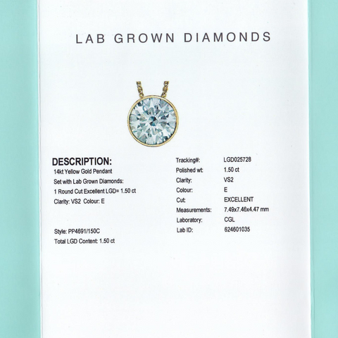 This simple and elegant pendant allows the diamond to shine on its own. It features a stunning 1.50ct round lab-grown diamond set at the center of a 14kt yellow gold circle pendant. It makes a perfect gift for yourself or a special someone in your life.