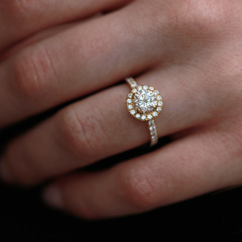18kt Yellow Gold 1.66cttw Round Halo Engagement Ring. Circle of Love