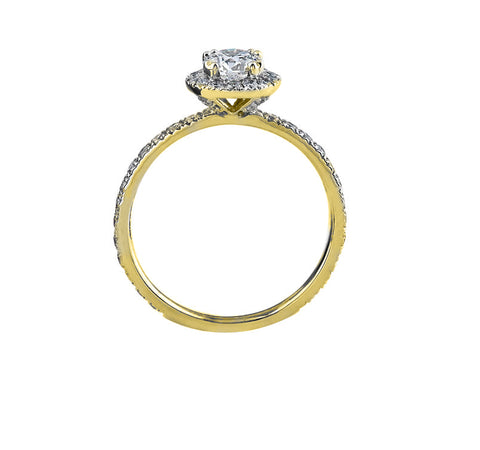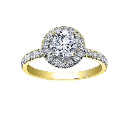 Crafted in 18kt yellow Canadian Certified Gold this stunning 1.66cttw engagement ring features a beautiful 1.01ct round brilliant cut diamond surrounded by a halo of shimmering diamonds.