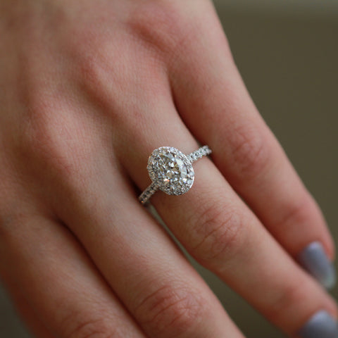 Introducing our exquisite Oval Natural Diamond Engagement Ring, a timeless symbol of love and commitment. At the heart of this stunning piece lies a stunning 1.80ct oval diamond. Surrounding the center stone is a halo of round diamonds, enhancing its beauty and adding a captivating sparkle, bringing the total carat weight of the ring to 2.60cttw.