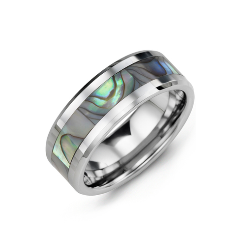 Men's Beveled Shell Inlay Tungsten Wedding Band