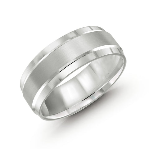 A wonderful alternative for men looking for a unique wedding band. This white cobalt ring features a satin band around the center with a high-polish finish on each side.